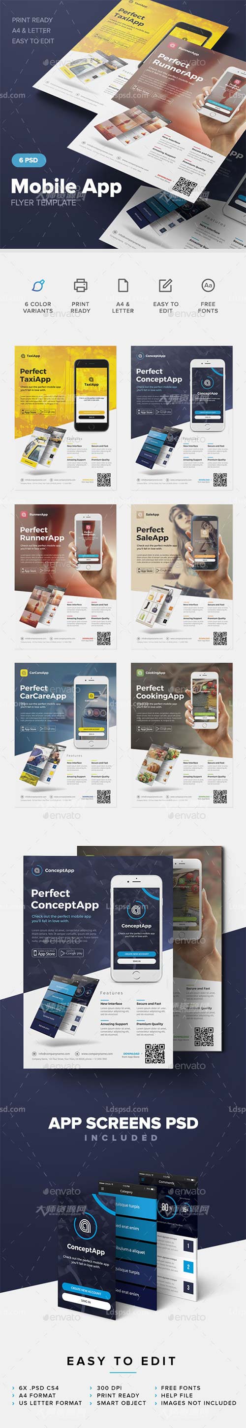 Mobile App Flyer Template,手机应用程序宣传单模板(6种色调)