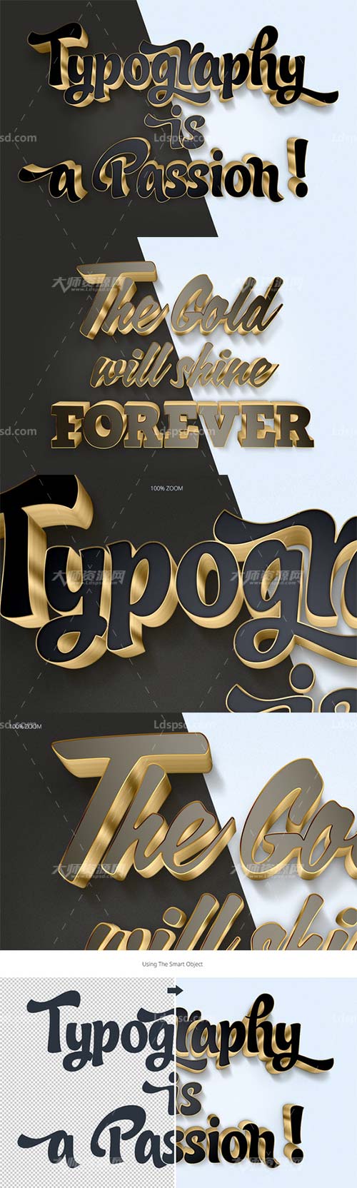 3D Gold Text Effects,极品3D文本模板(黑金色)