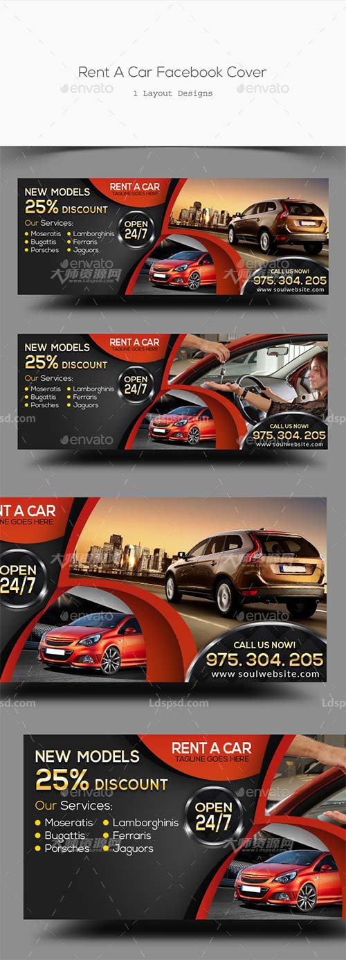Rent A Car Facebook Cover,汽车租赁广告模板