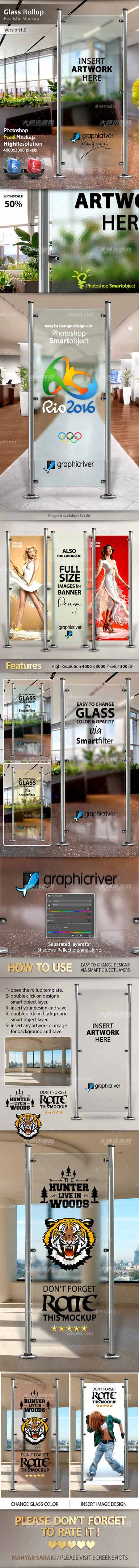 玻璃展架模型:Glass Banner Rollup Mockup