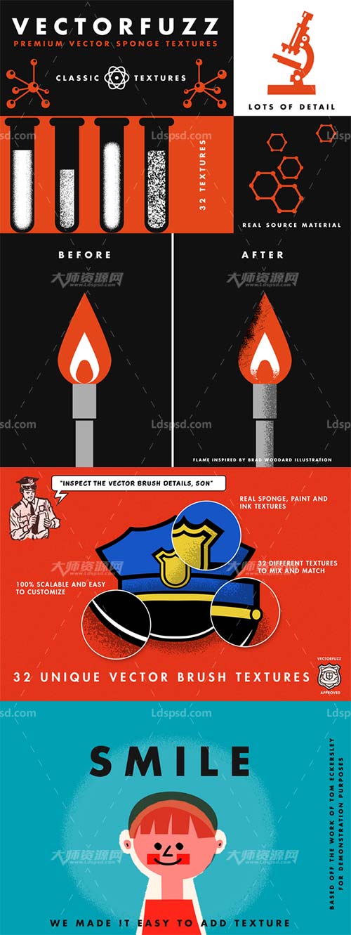 VectorFuzz Illustrator Brushes,极品AI画笔-颗粒噪点(32支)