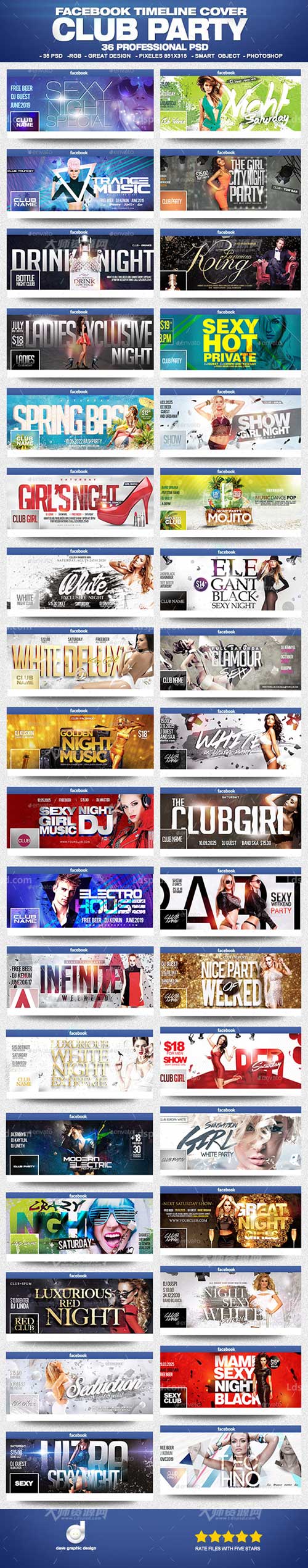 36个网页头部广告模板:Facebook Club Party Bundle 1