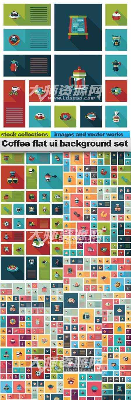咖啡图标合集:Coffee flat ui background set