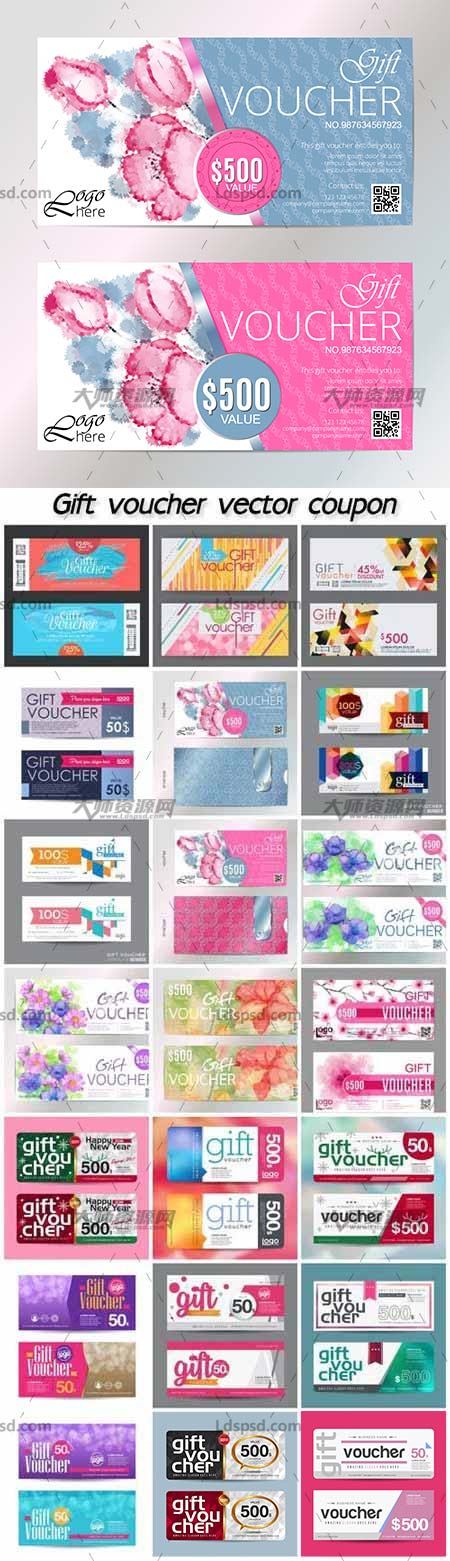Gift voucher vector coupon,25套矢量的礼券/优惠券模板