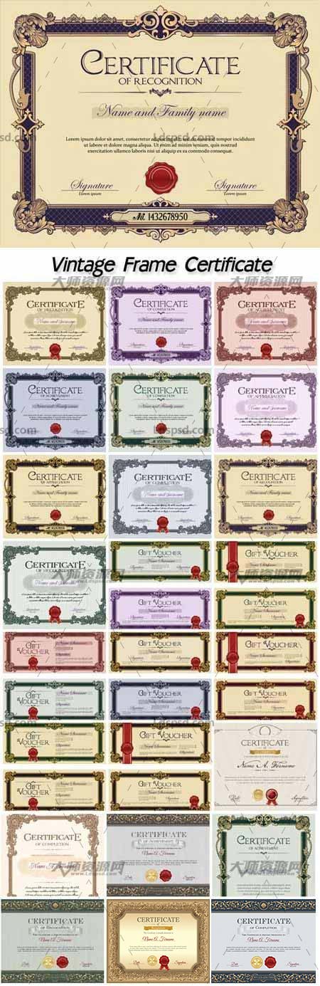 Gift voucher color royal blue and royal green,25套矢量的荣誉证书模板(极品)