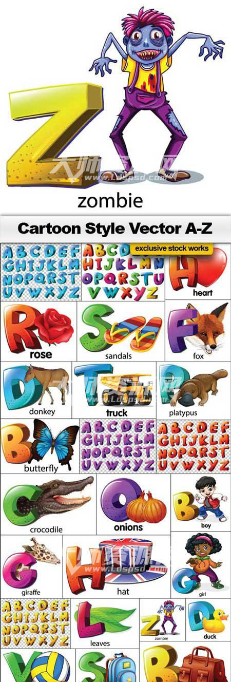 3d文字图案和人物插画:Cartoon Style Vector Alphabet