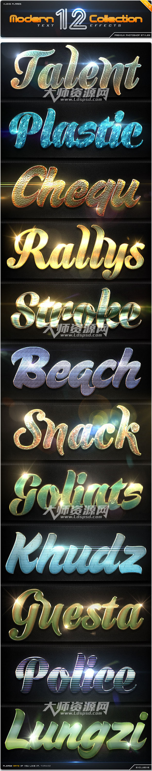 PS样式:12 Modern Collection Text Effect Styles Vol.5