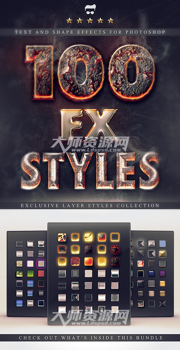 A unique .asl file with ALL the Layer Styles you see above (many more than 100 actually)