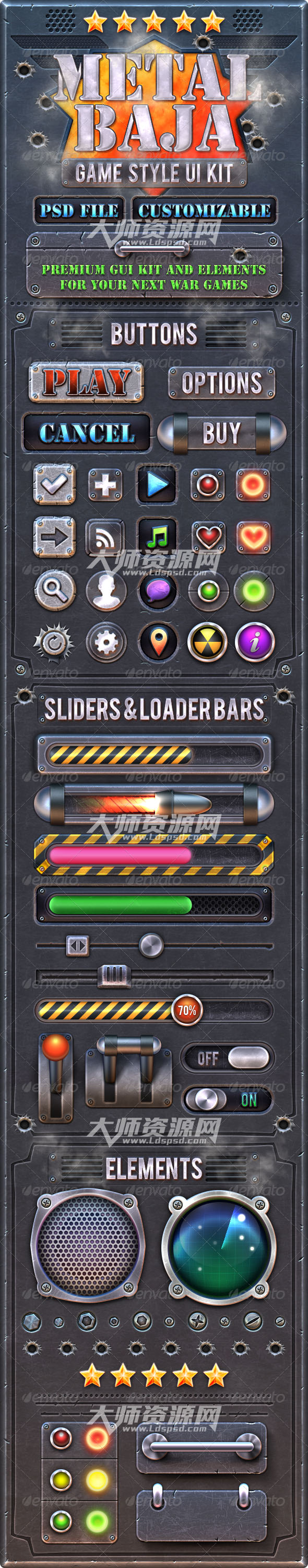 PS样式:Metal Baja Game GUI Kit