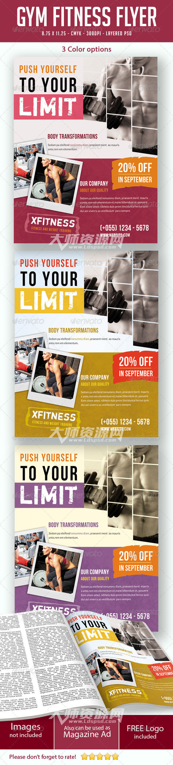 健身俱乐部宣传单模板:Gym Fitness Flyer Print Ad