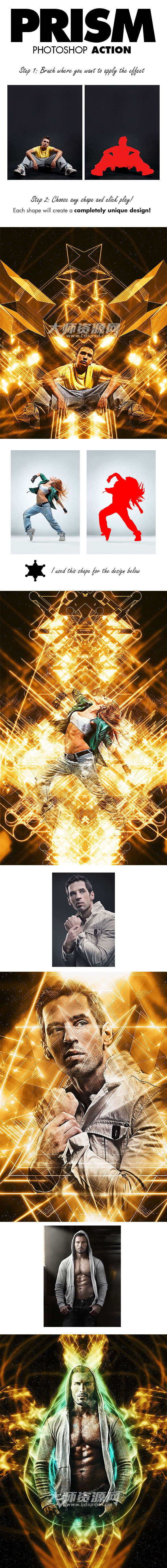 上面的预览图只是部分效果,查看更多的效果图可点击后面的网址:http://graphicriver.net/item/prism-photoshop-action/9539998