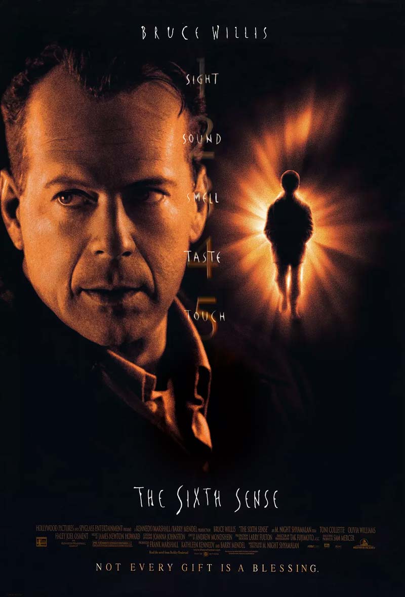 • 叹息的墙壁(3666999) 评论 第六感 The Sixth Sense:最意外的结局,只有电影能够很好地表达。其中较恐怖的镜头大概是床下看到鬼娃...最悲的画面是布鲁斯威利斯发现自己背上都是血,原来是只看到了自己想看到的,在无意中反而帮助了那个有鬼眼的孩子。个人觉得比《小岛惊魂》要好,但是那是基德曼演的,也有加分了。算一个类型吧