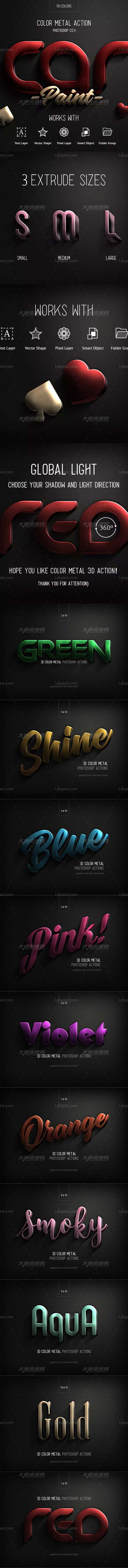 极品PS动作-3D金属文本(10种色调/含高清视频教程):3D Color Metal - Photoshop Action