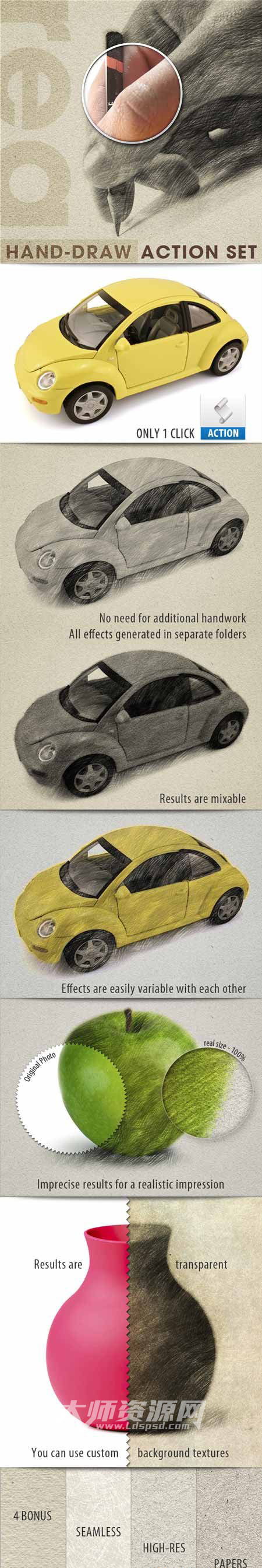 PS动作/图案:Realistic Hand Draw Generator Action Set