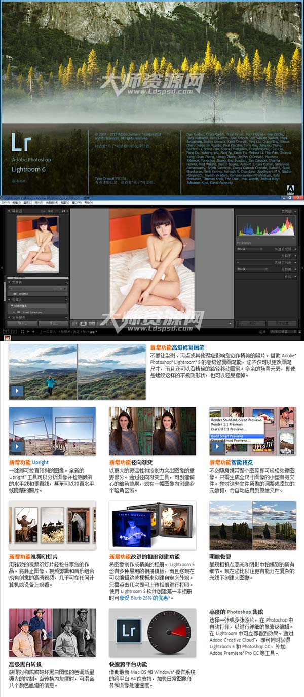 Adobe Lightroom Classic 将只支持64位操作系统,新增功能包括人脸识别管理、自动全景拼接、合成编辑HDR以及更强大的修复画笔,其他改进还包括经过全新幻灯片模式、增加对HTML5和社交网络的支持。