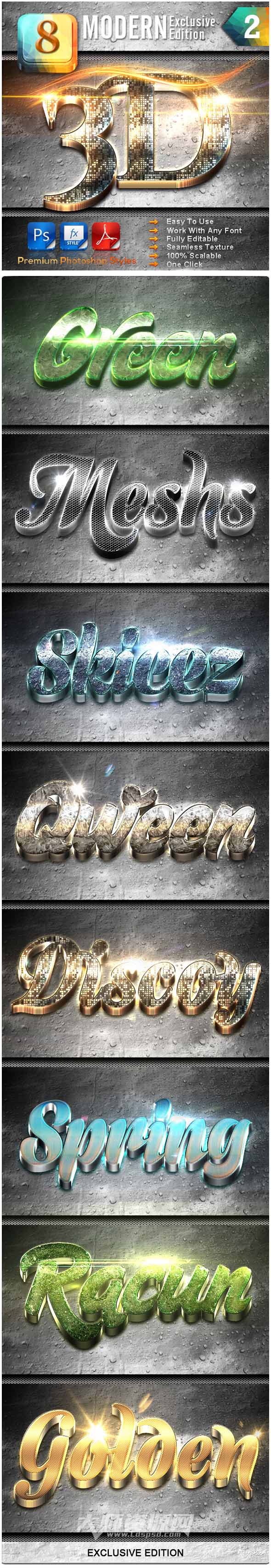 8 Modern 3D Exclusive Edition Vol.2,PS图层样式-8个时髦的3D文本特效(第二分卷)