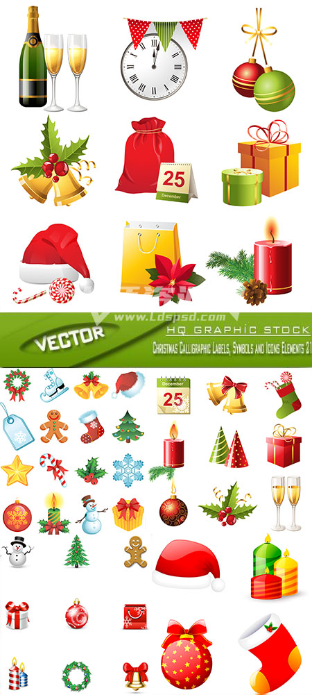 圣诞节素材:Christmas Calligraphic Labels, Symbols and Icons Eleme