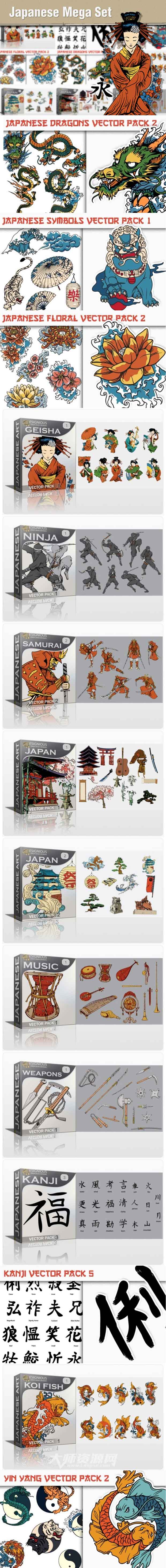 日本风矢量素材全集:Japanese Vectors Mega Set,159 Premium Designs