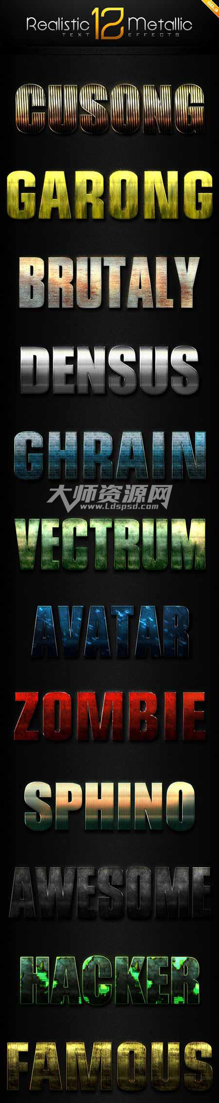 PS图层样式:12 Realistic Metallic Text Effect Styles GO.3