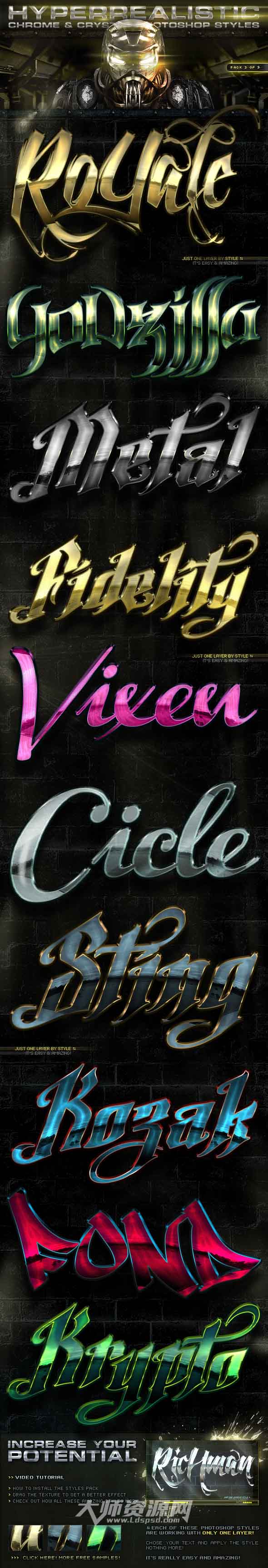 PS图层样式:Chrome & Crystal Photoshop Styles 3of3