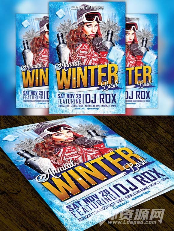 冬日聚会活动海报:Annual Winter Bash Flyer Template