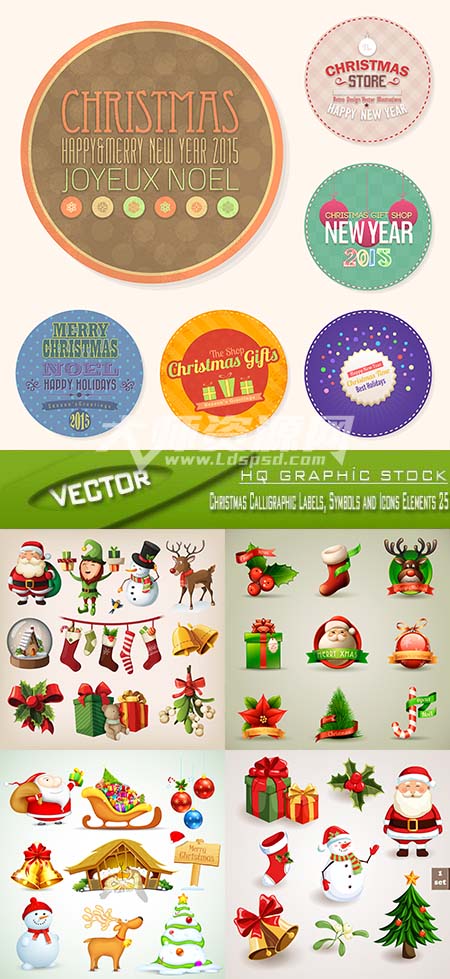 圣诞节素材:Christmas Calligraphic Labels Symbols and Icons Elemen