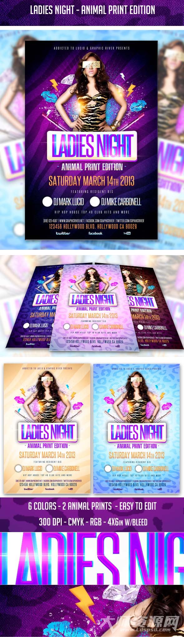 Ladies Night - Animal Print Edition | 酒吧海报|迪吧海报|豪华派对|夜场表演海报|海报模板