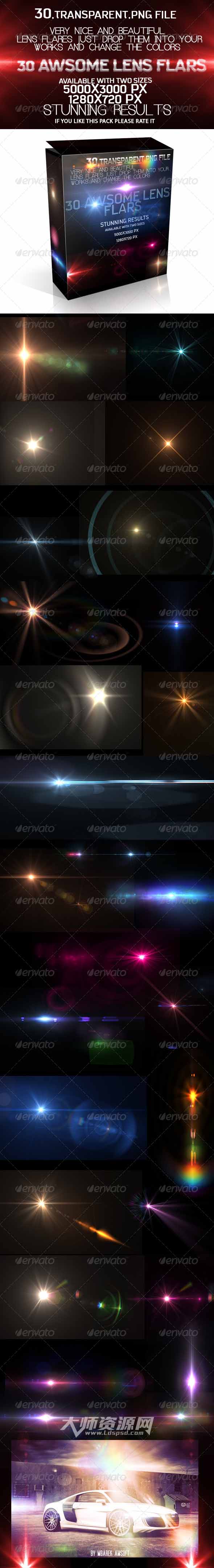 30 Awsome Lens Flare,30个光线素材,炫光素材,星光素材,光斑素材,光晕素材,高清图片
