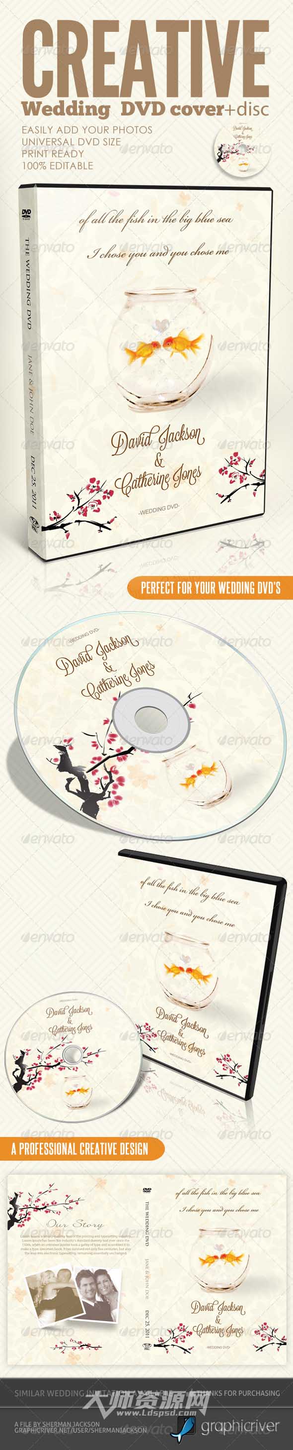 Creative Wedding DVD & Disc Label Artwork PSD,DVD光盘封面,光盘封面,结婚光盘封面,封面模板,婚庆光盘封面模板