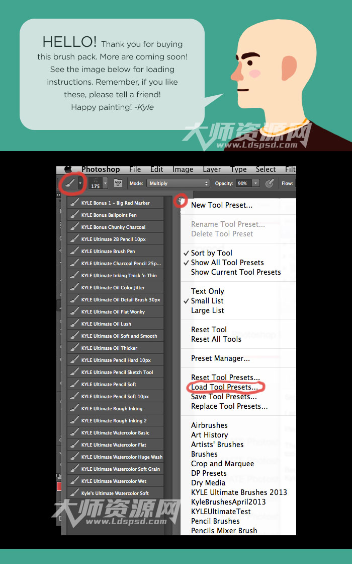 Kyle's Photoshop Brush Mini Pack | Photoshop .TPL | 4.06 Mb