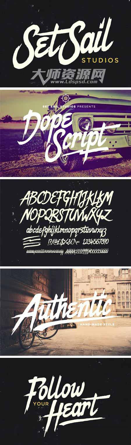 Dope Script is a rough around the edges, hand-made paint brush font with bags of personality. It comes with a large range of characters including capitals, lower-case, numerals, punctuation, currency and accents. Also try the characters { } [ ] for some bonus swashes to pop-out your text!