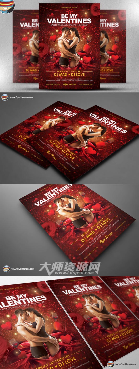 Be My Valentine Flyer Template ,情人节,情人节海报,情人相会,节日海报,海报模板,宣传单模板
