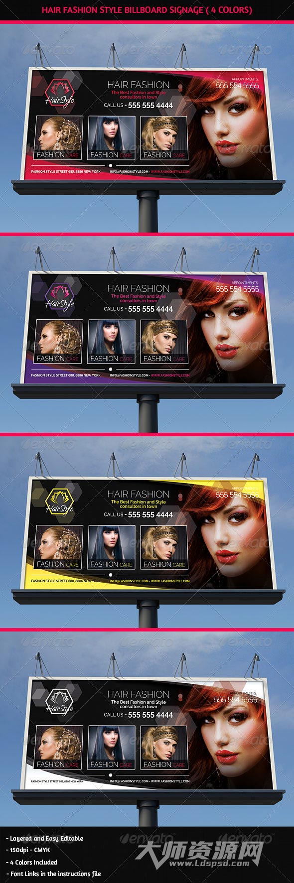 时尚美发沙龙户外广告模板:Hair Salon Fashion Style Billboard Signage