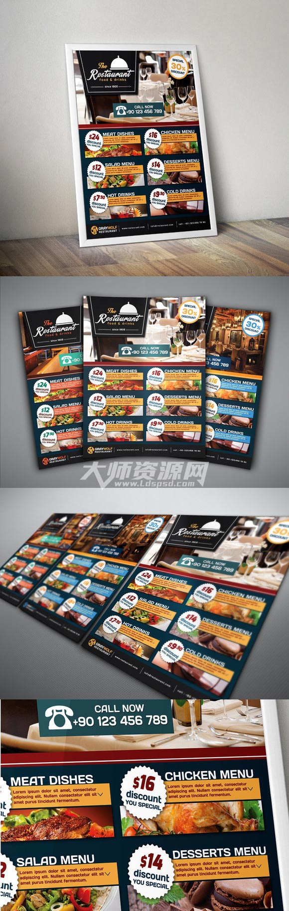 菜谱菜单模板:Cafe and Restaurant Flyer