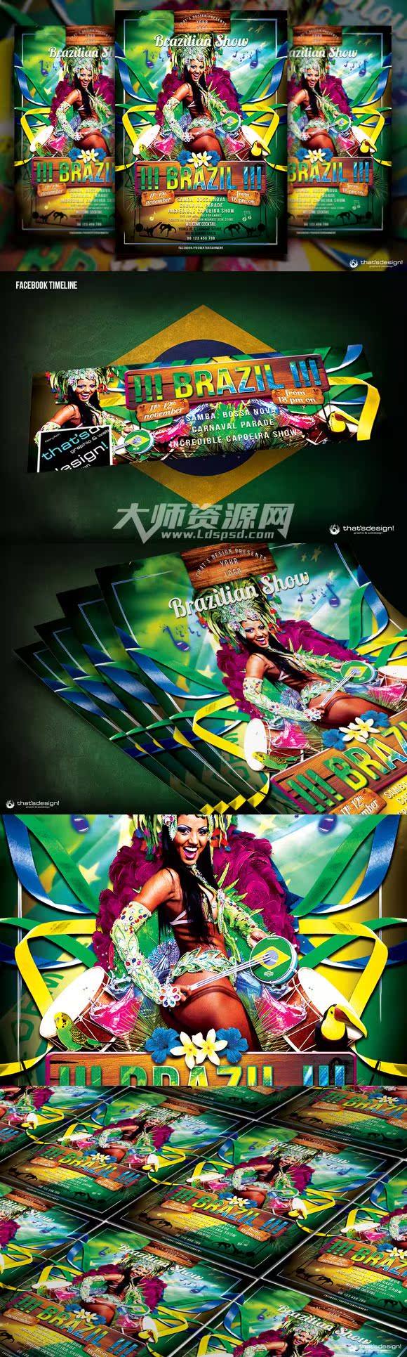 Brazilian Show Flyer Template,巴西风格传单模板,酒吧迪吧传单,海报模板