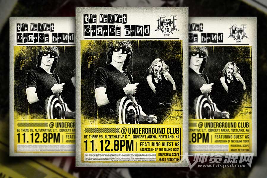 Live Concert Flyer Poster Template 3,音乐节传单,摇滚音乐,传单模板,海报模板