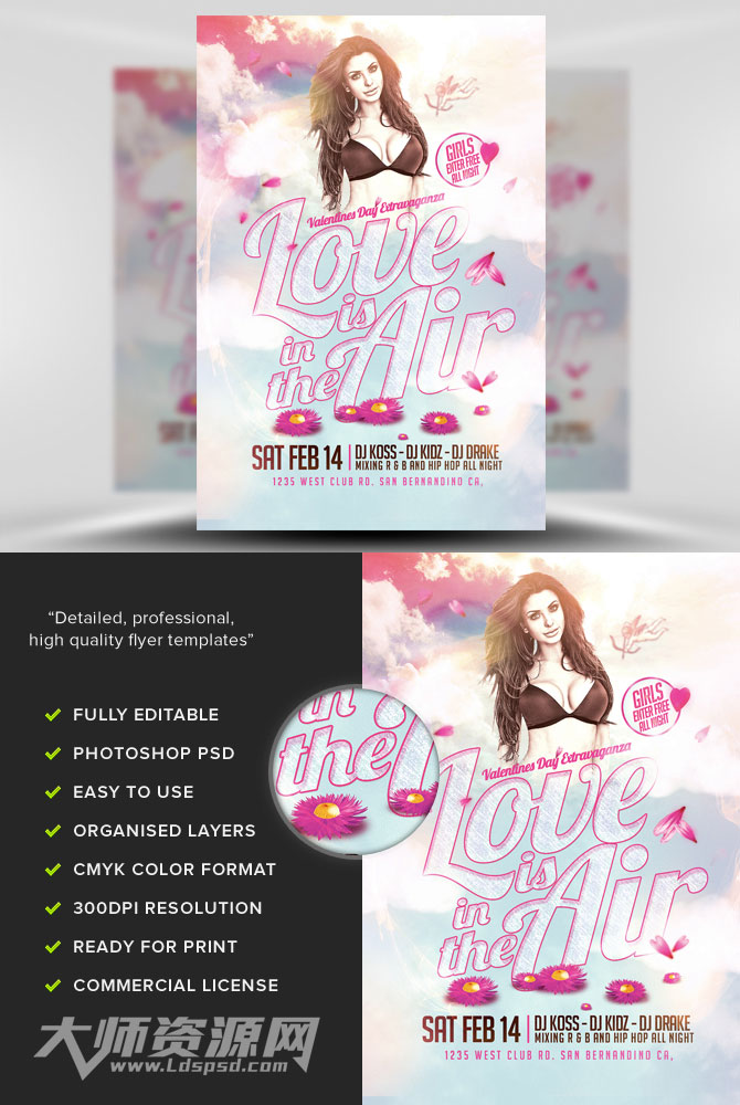Love is in the Air Flyer Template is a premium Photoshop PSD flyer / poster template designed by FlyerHeroes to be used with Photoshop CS4 and higher.
