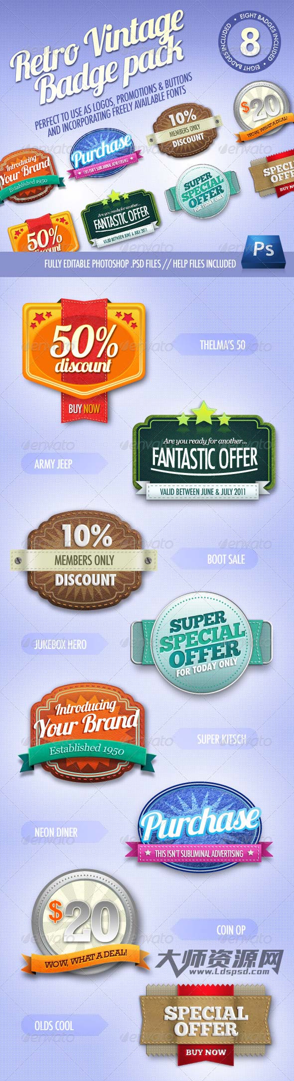 8 Retro Vintage badges,8个复古的徽章,复古标签