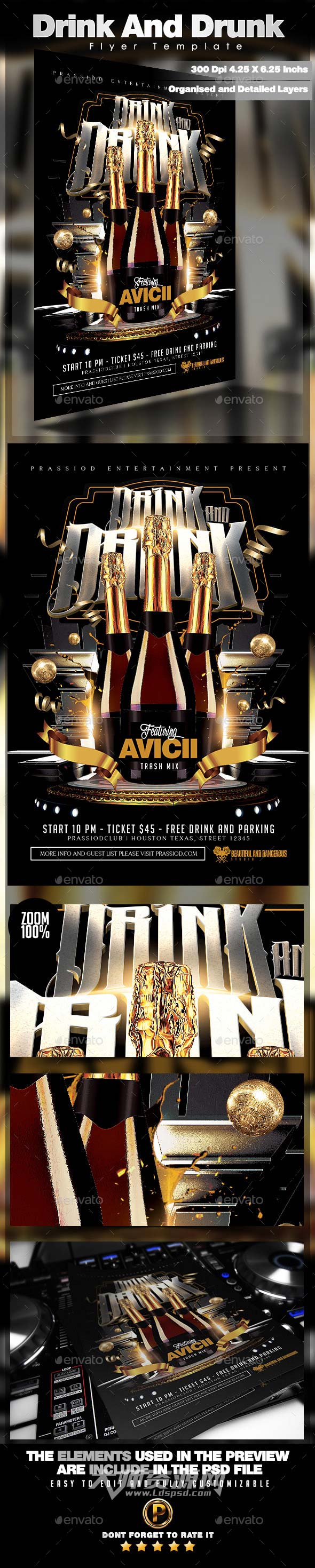 酒类产品展销会传单模板:Drink And Drunk Flyer Template