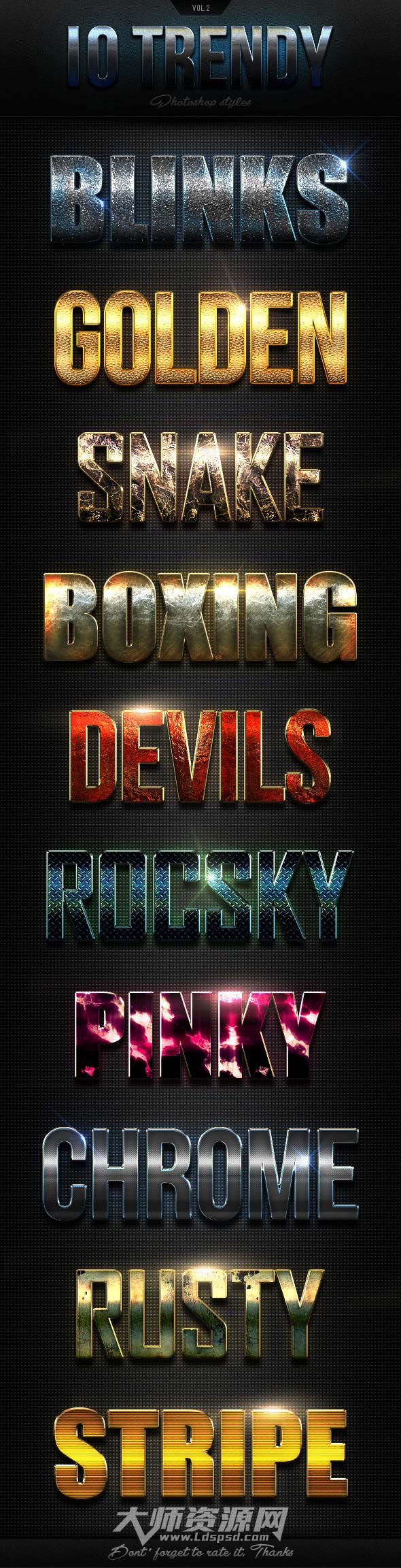 10个时髦的PS图层样式(第二套):10 Trendy Photoshop Styles Vol.2