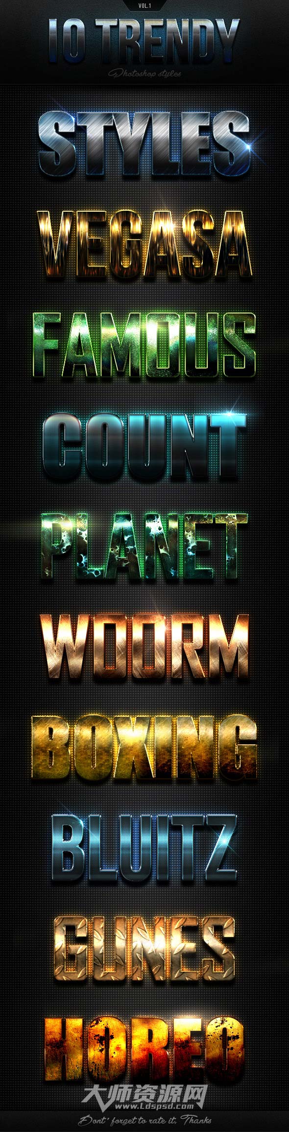 10 Trendy Photoshop Styles Vol.1,10个时髦的PS图层样式(第一套)