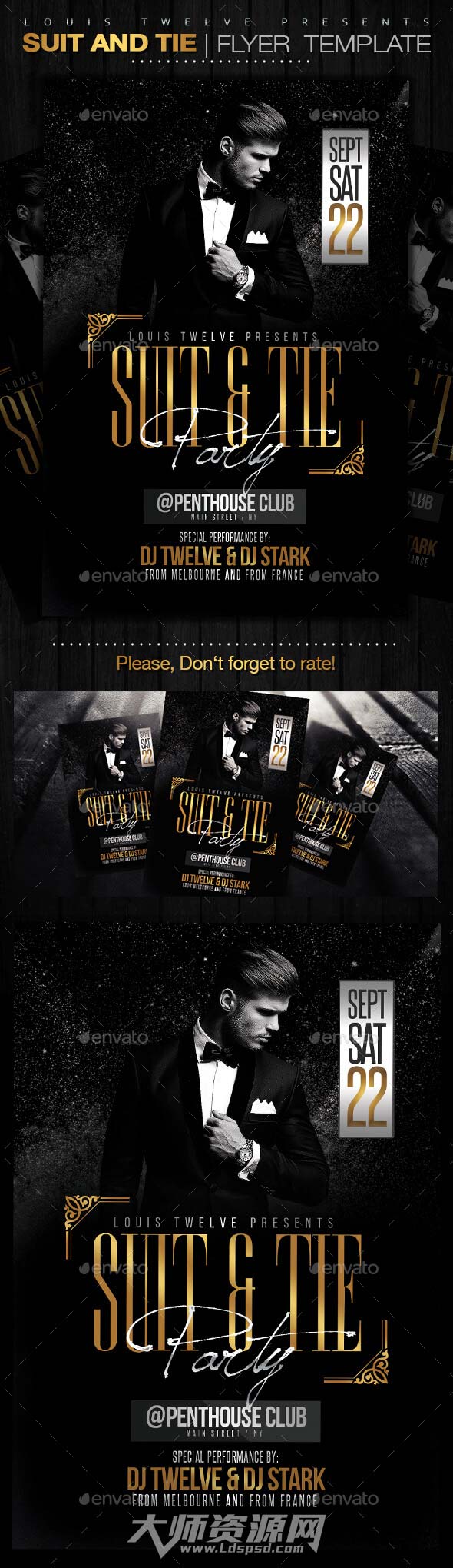 低调奢华的派对传单模板:Suit and Tie Elegant Party Flyer Template