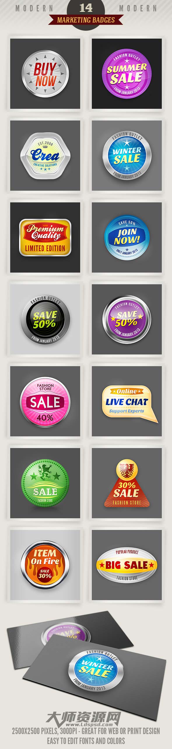 14个产品促销标签徽章模板:14 Modern Marketing Badges