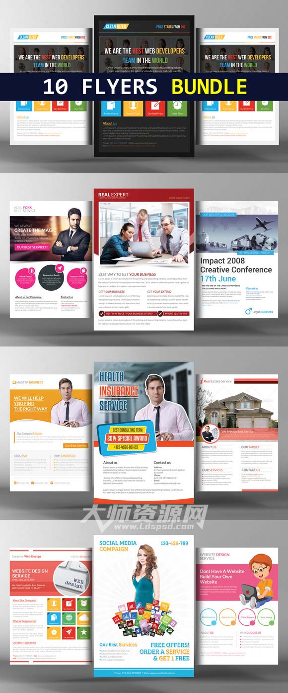 10 Business Corporate Flyers Bundle,10个通用型产品宣传单模板合集
