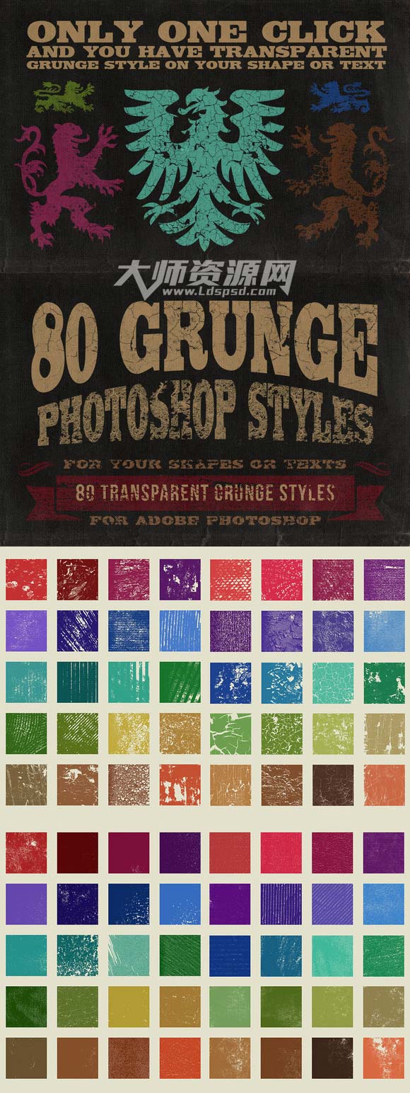 80个斑驳污渍风格的PS图层样式:80 Grunge Photoshop Styles