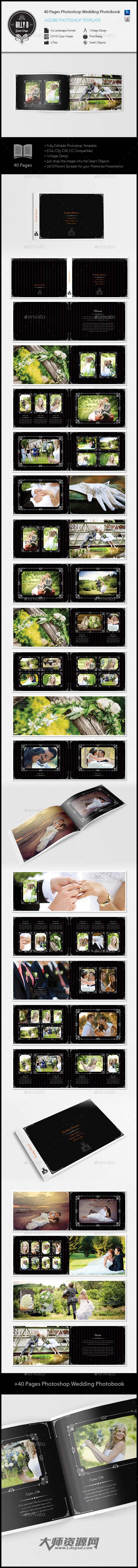 40 Pages Photoshop Wedding Photobook Template,40页婚纱影集画册PSD模板