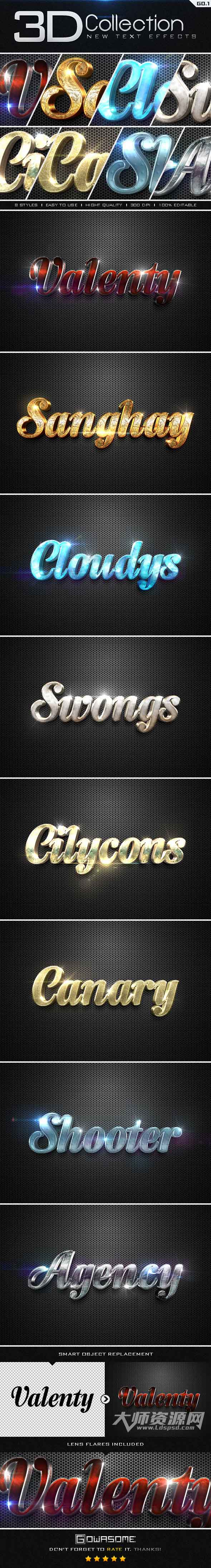 New 3D Collection Text Effects GO.1,极品3D金属质感的PS图层样式