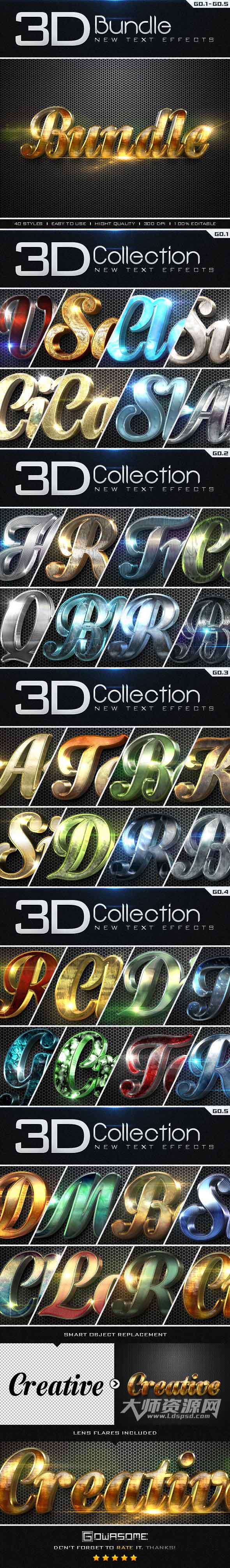 New 3D Collection Text Effects Bundle,极品3D金属质感PS样式1-5合集