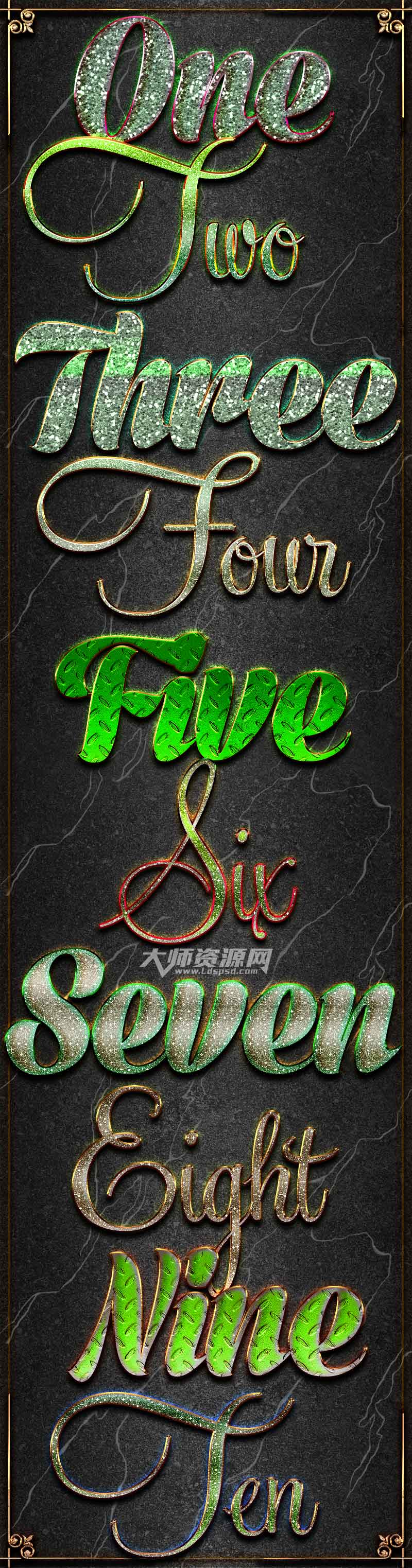 10个金属光感强的PS图层样式:10 Shine Styles 2