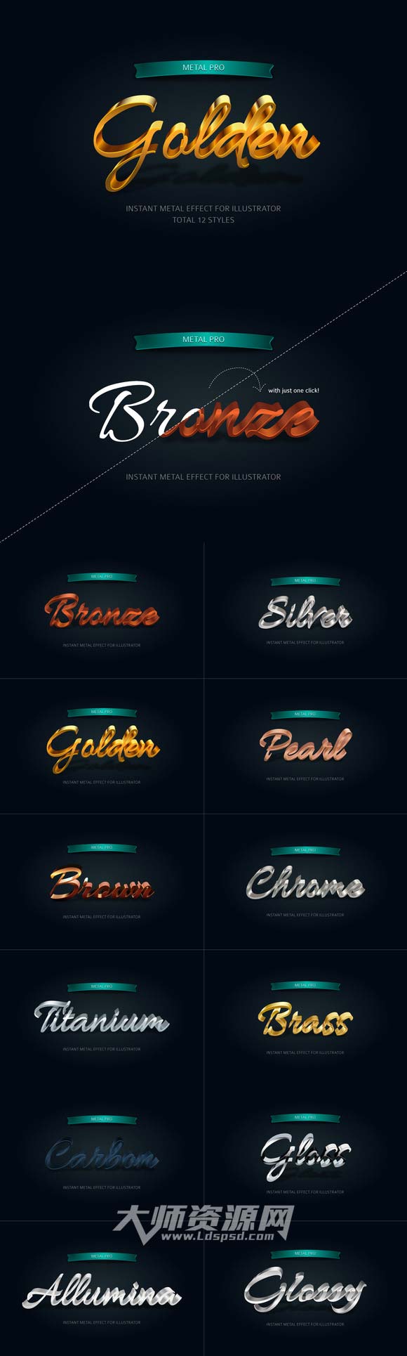 金属质感的illustrator图形样式:Metal Pro-Instant Illustrator Effect